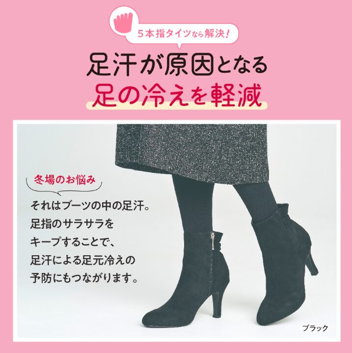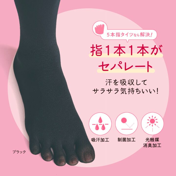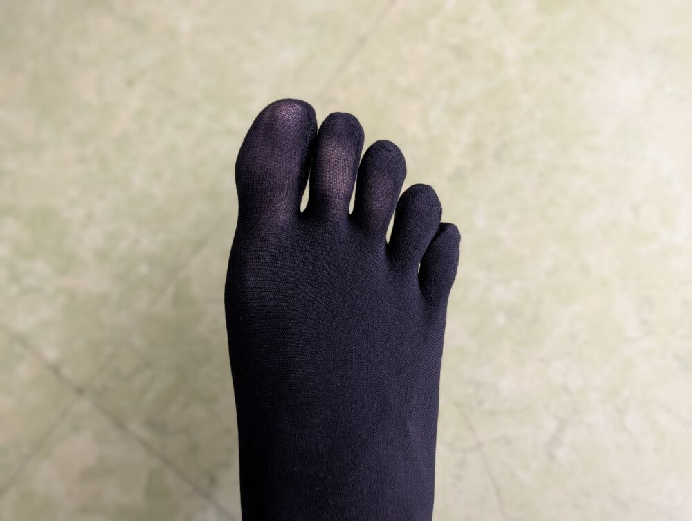 普通のタイツだと指先が密着して動きにくいですが、5本指タイツなら1本ずつ指が独立しているため…